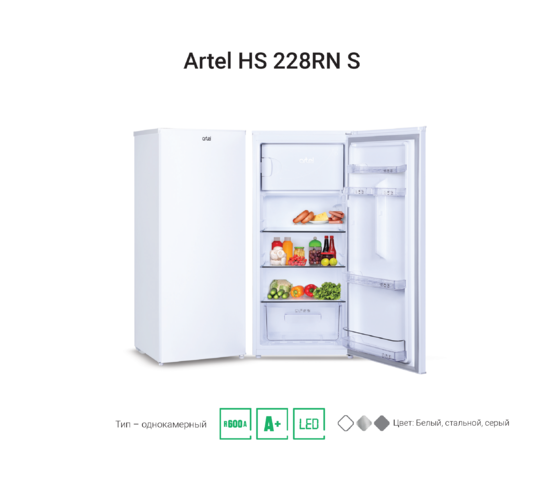 Холодильник Artel HS 293 RN в корпусе белого цвета обладает мощностью замораживания до 2.0 кг/сутки. У устройства механический тип управления. В аппарате светодиодное освещение. Максимальный уровень шума в режиме активной эксплуатации — 42 дБ. В устройстве предусмотрена зона сохранения свежести. В аппарате применяется хладагент R600a. Прибор оснащается перенавешиваемой дверь. В холодильнике применяется компрессор стандартного типа. Внутренние полки изготавливаются из закаленного стекла.
