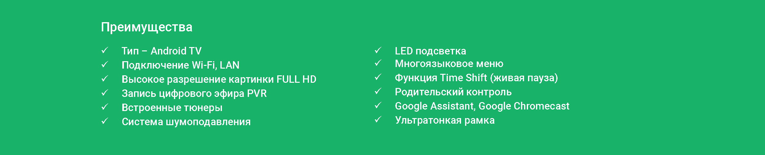 799.00 BYNТелевизоры Артел A43PFCH010 с корпусом черного цвета оснащены 43-дюймовым экраном, соответствующим формату 16:9. Разрешение — 1920х1080 пикселей. Технология цифрового шумоподавления отсеивает помехи и повышает качество картинки. Аудиосистема представлена двумя фронтальными динамиками мощностью 10 Вт. Операционная система — Android. В комплекте есть инфракрасный пульт дистанционного управления, работающий от двух батареек AAA и настольная подставка. Доступны голосовые команды. Предусмотрена защита от детей. Есть встроенные часы. Поддерживается функция Smart TV. Подключиться к интернету можно по Wi-Fi, а за кабельное соединение отвечает интерфейс LAN. Взаимодействие с флешками и портативными жесткими дисками обеспечивают порты USB. Также есть разъемы HDMI и RCA и 3,5-миллиметровый аудиовыход для проводных наушников.