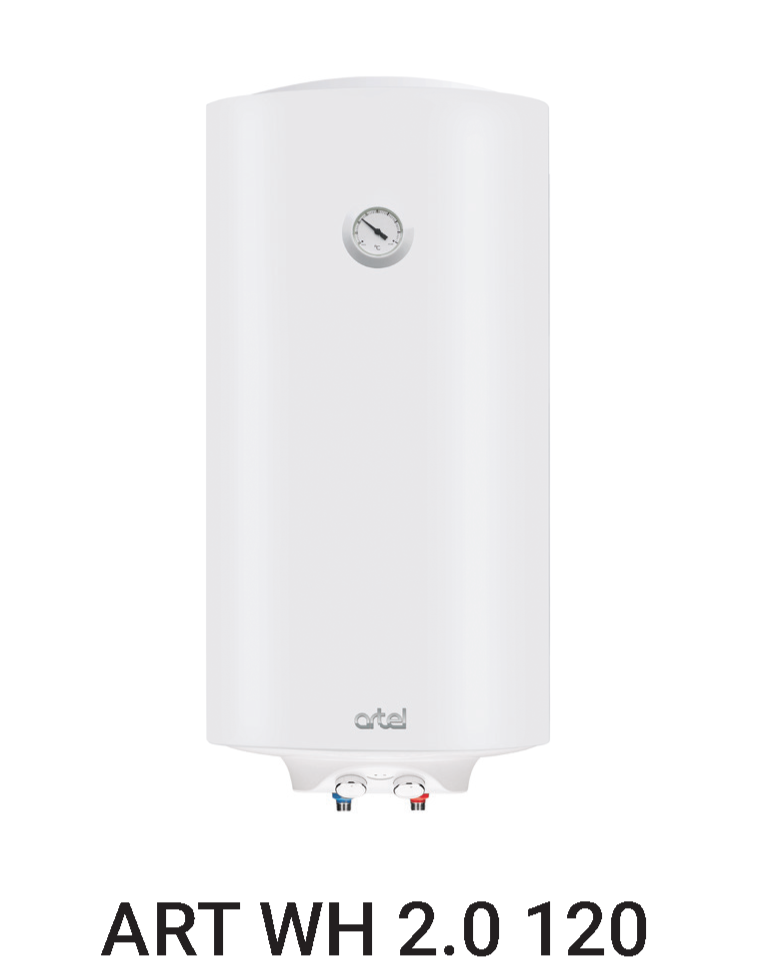 Накопительный водонагреватель Artel ART WH 2.0 120 оборудован металлическим баком для воды объемом 120л, внутри которого нанесено защитное покрытие от образования коррозии. В комплект поставки входят анкерные болты для настенного монтажа устройства. Толстый изоляционный слой снижает потерю тепла, благодаря чему вода дольше остается горячей. Максимальная температура нагрева составляет 75°C. Показатель потребляемой мощности не превышает 2000 Вт. Спереди установлена механическая панель управления с цифровым дисплеем. Встроен световой индикатор включения. Уровень давления в системе должен находиться в переделах от 0,5 до 6,5 Бар. В наборе идет устройство защитного отключения. Приблизительное время нагрева полного бака равно 230 мин.