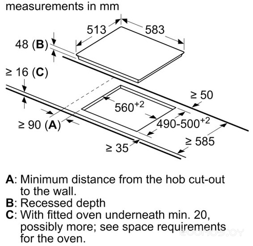 | Глубина для встраивания | 50см |